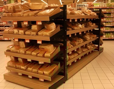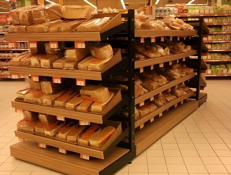 Freshly stocked bakery products including bread, buns, cakes, rusks, biscuits, and other baked delights loved by all age groups.